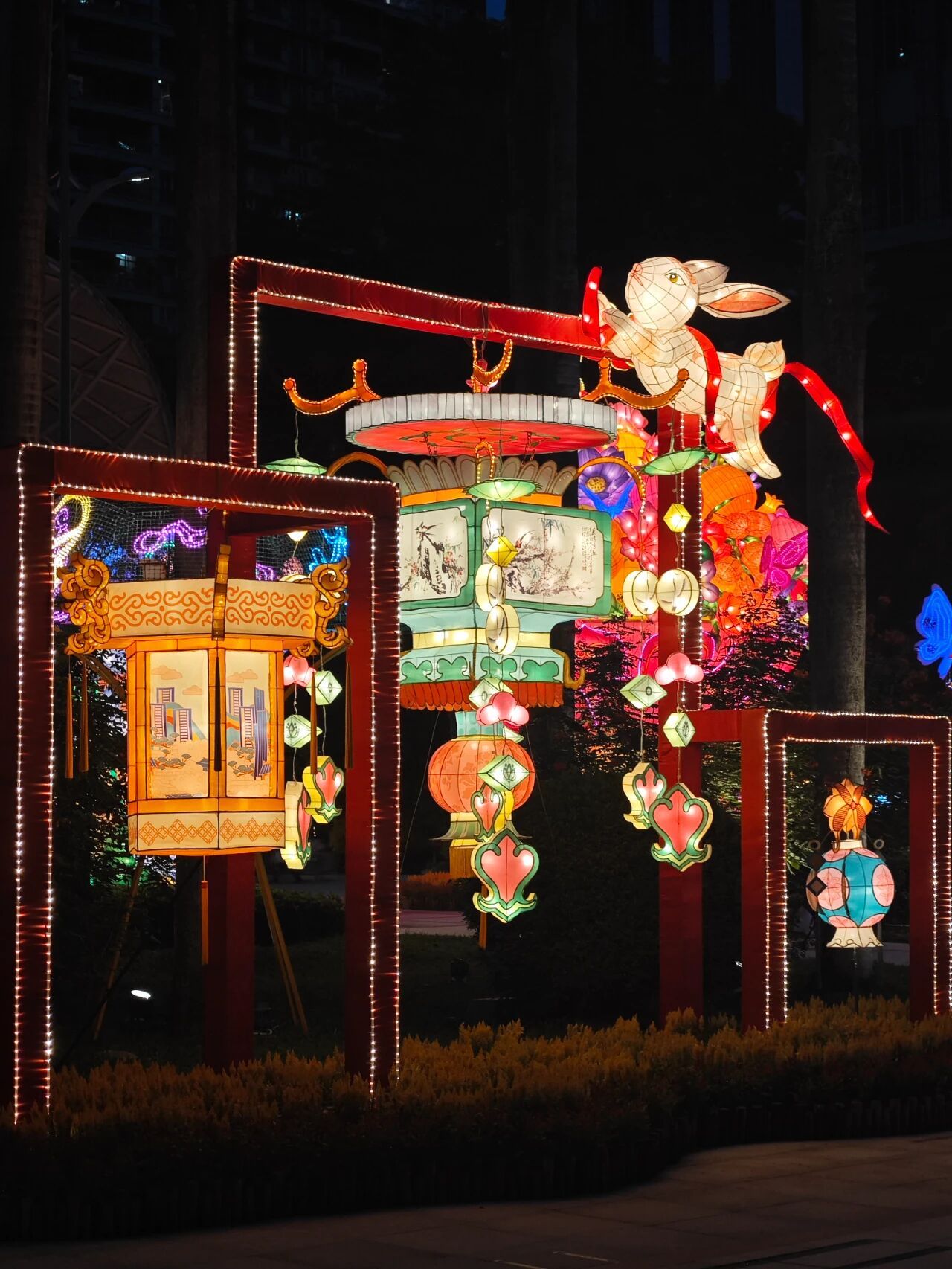 值得一提的是,伴随着公园原“汉城”地块上建成的十三行印迹园全新启用,使得本次中秋灯会成为近年来展示面积最大的一届灯会。十三行印迹园中,宫灯长廊与鱼灯长廊交相辉映,庭园灯、草地灯、泛光灯错落铺陈。灯影交织间,传统技艺与现代匠心共绘园中秋色。